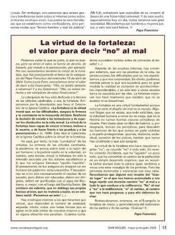 mo de la Iglesia Católica: «La fortaleza es la virtud toma en serio el desafío del mal en el mundo. Algu-